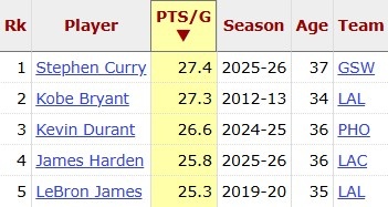 此役过后,库里本赛季场均得分来到27.4分,据统计,这是一名球员在他生涯第17个赛季的最高得分纪录。