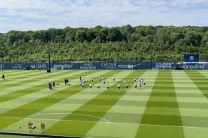 据记者Dani Gil报道,巴黎今日进行了对阵阿森纳之前的最后一次训练,全部球员都参加训练,备战这场重要比赛。巴黎俱乐部主席纳赛尔、总监坎波斯现场观看了训练。